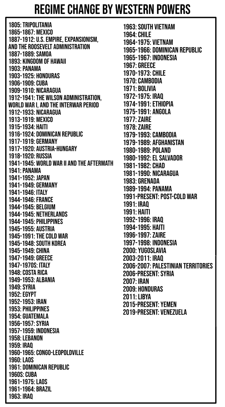 Long list of regimes changed by western powers